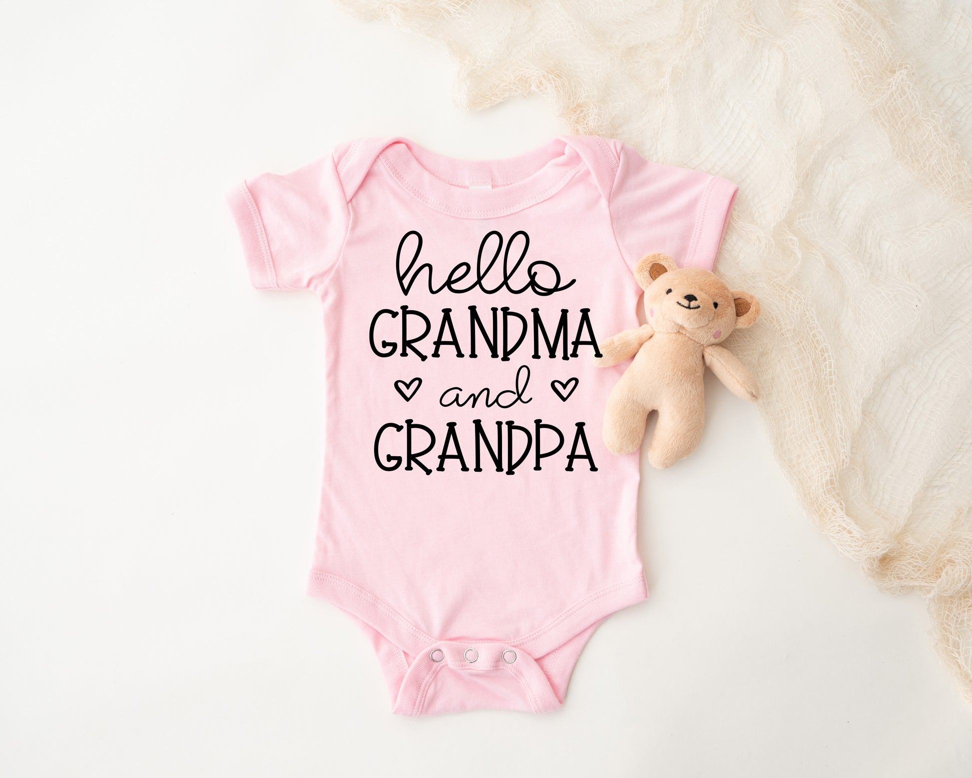 Our personalized Hello Grandma & Grandpa Onesie® is the perfect baby shower gift, gender reveal gift or coming home gift. This customized Unisex Onesie is made with 100% cotton for a soft fit, handmade and beautifully packaged with care and attention to detail and perfect for any special occasion.